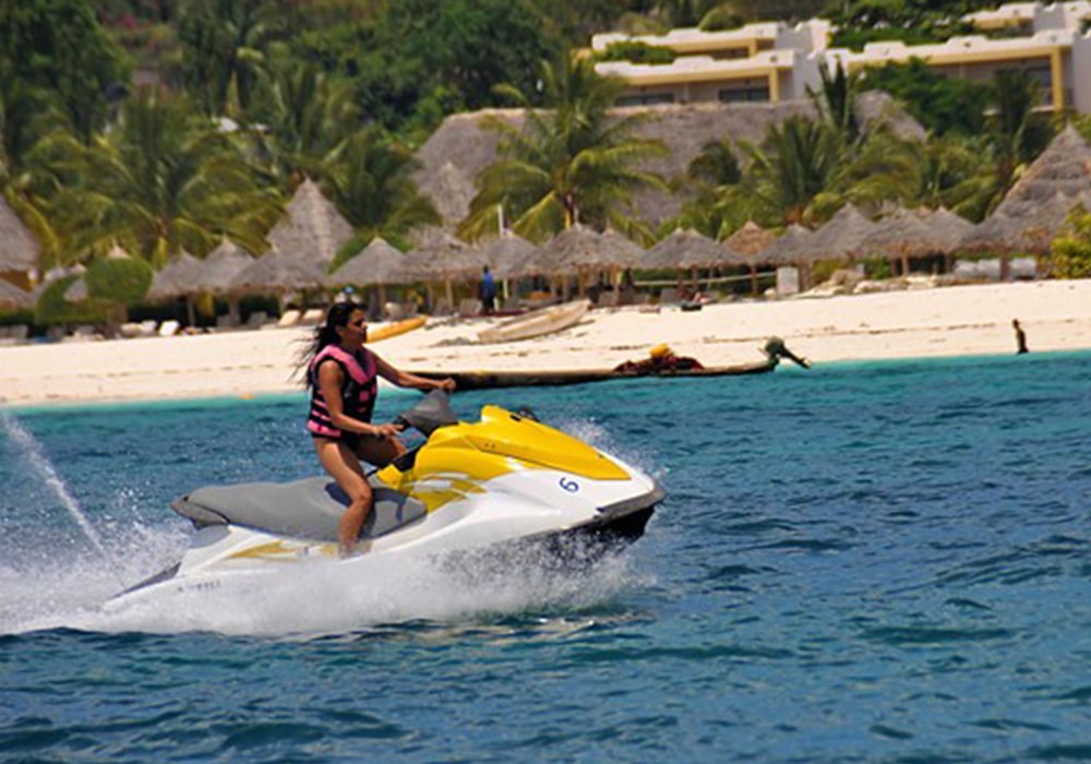 Never ridden a Jet Ski before? Don’t worry because the excellent staff will provide you with safety instructions and tips on how to ride. An instructor will take you out to the pontoon where you will get on the Jet Ski and receive your briefing, the instructor will explain about the pre-marked riding areas, control of the Jet Ski, stopping etc. Then all that is left is to strap on your life jacket and hit the water. Hear the wind whistle in your ears as you race along; pull back the throttle a little more if you want more of a rush. Learn how to turn, go faster and control the Jet Ski in the waves during your rental period; then finish by walking away with a smile on your face.