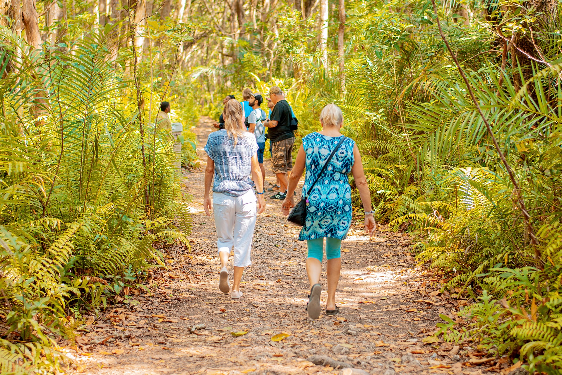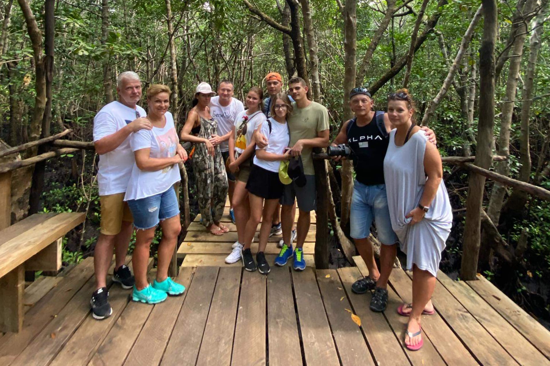 The mangrove board walk takes you above the swamp where depending on the tide you can see tropical fish between the mangrove roots and crabs scuttling across the mud. Mangroves play an important role in environmental conservation and as a resource for villagers and community life. The guide will explain the different species found in the swamp and their uses.