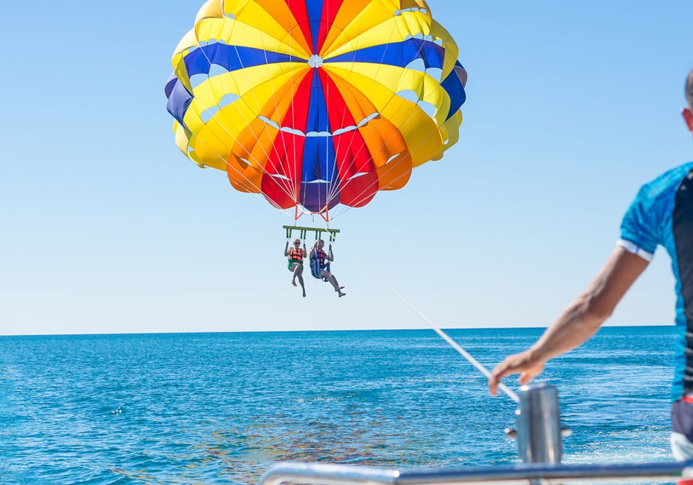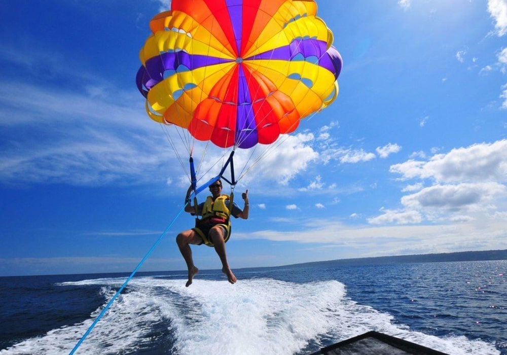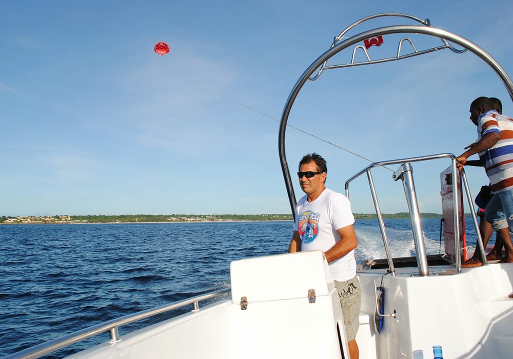 Breathtaking panoramic views of Zanzibar, flying high in the sky, there is nothing like it! Everyone can do it 8 - 80 years! Safest, easiest and most exciting ocean sports activity. The activity will be 30 - 40 Minutes, including the boat ride and each person flying for 10 minutes, see the brilliant colors of the coral reef around the northern tip of Zanzibar - stretching over 2 km's into the Ocean. Parasailing is an adventure anyone can enjoy because there is no running or jumping, and no experience is necessary. Your captain will provide safety and flying instructions to ensure you have a fantastic time in the safest way possible. When it is your turn to parasail, you will be secured in a safety harness. You are safely and securely attached to the rope allowing you to float in the air and enjoy the thrill of flying and the amazing panoramic views of the island.