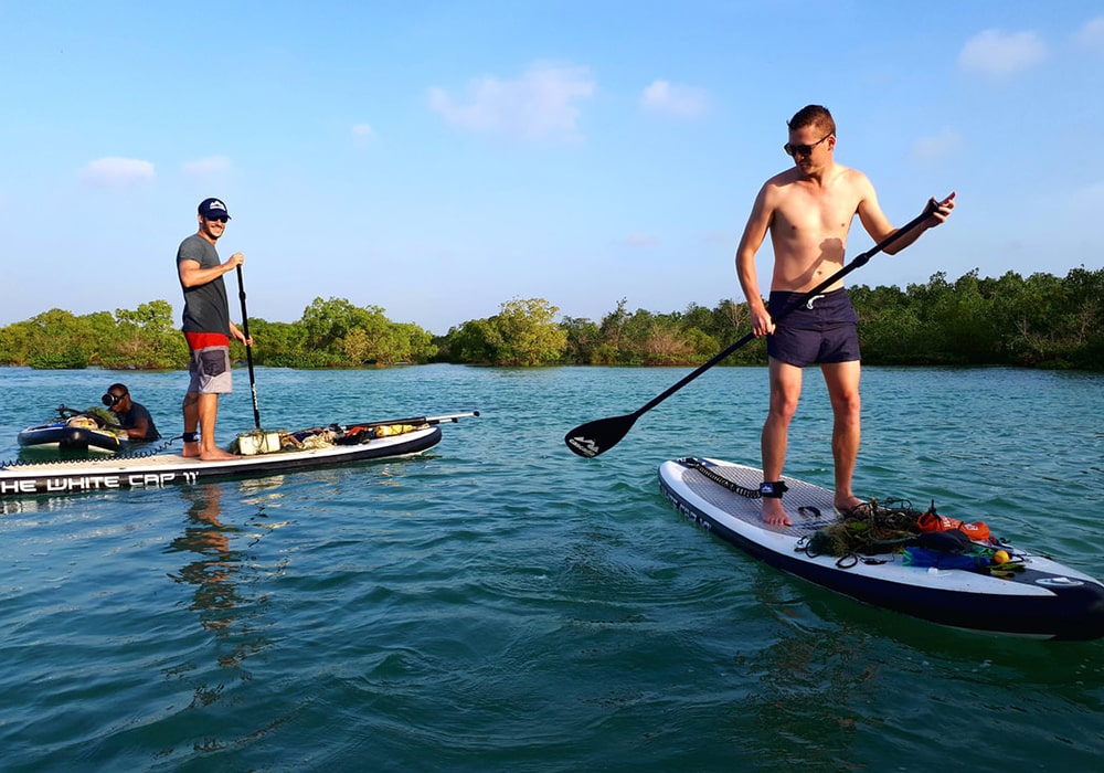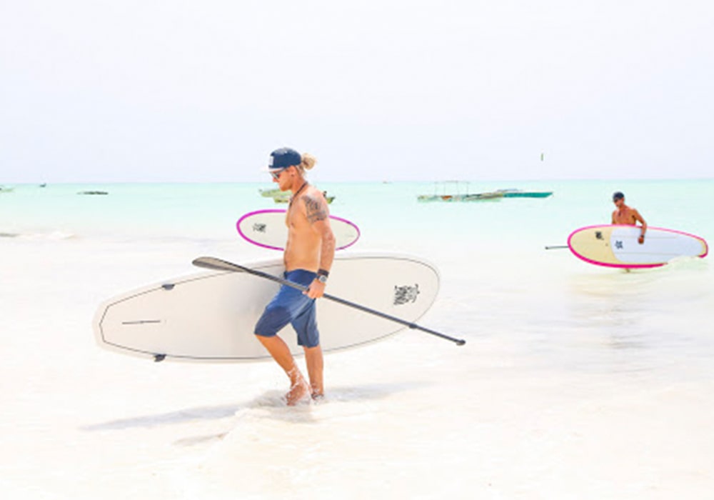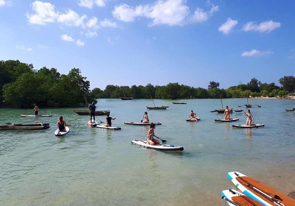 SUP Boarding is a super fun activity and perfect to do on the mid and high tide, when the water is deep enough to paddle through the lagoons of Paje. Best days for this sport are the calmer days with little or no wind. It is a great sport, easy to learn, fun and perfect to train your core balance. Stand Up Paddle Boarding is great for everyone to try and no pre experience is needed to have fun paddling. If you are a newbie to Stand Up Paddle Boarding we offer a free short introduction lesson to get you started. We offer Stand Up Paddle Board Trips from Paje. Join us for a guided trip to the waves, go on a downwinder with a fun group or simply rent the SUP and enjoy for yourself.